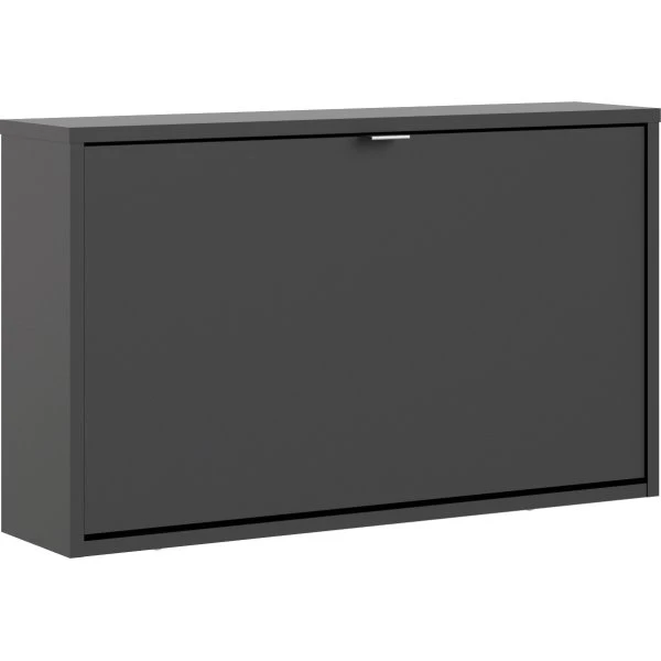 Flot og enkelt skoskab i sort med 1 rum, som gør det muligt at organisere og opbevare dine sko på pladsbesparende måde. Med den store klaplåge og det fine aluminiumsgreb får du et elegant og rummeligt skoskab med plads til 3 par sko. Skabet kan enten hænges på væggen eller stå direkte på gulvet, og er let at rengøre.
