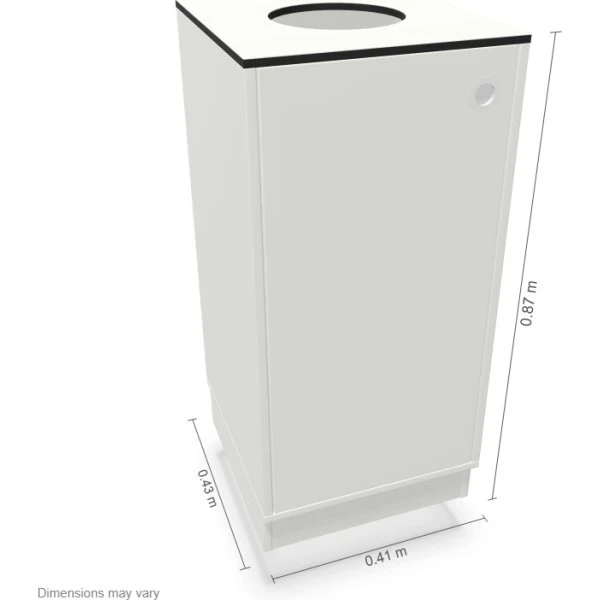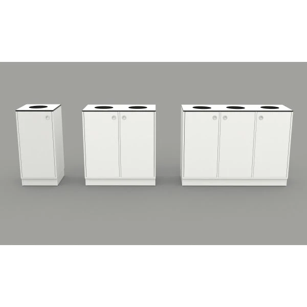 Denne miljøstation har ét rum og rund udskæring i toppen. Toppen er lavet i kompaktlaminat som gør det nemt at rengøre og vedligeholde.