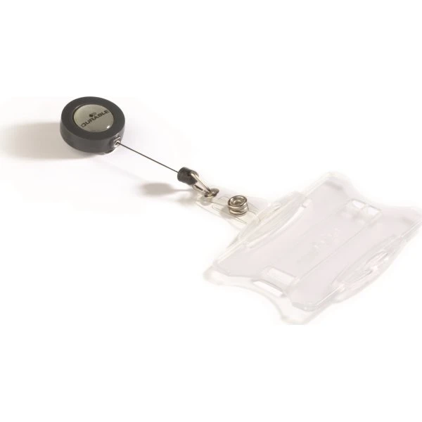 Med denne Kortholder fra Durable får du en holder med åben front og plads til 1 kort og med praktisk jojo med plaststrop og trykknap.