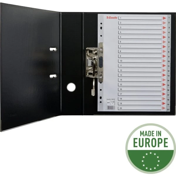 Få igen orden i virksomhedens papirer. Med dette register får du inddelt det hele, alt efter relevans. Hullerne er samtidigt forstærket, så registeret ikke går i stykker, og kan holde i flere år.