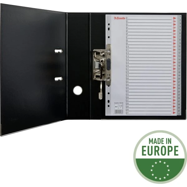 Få igen orden i virksomhedens papirer. Med dette register får du inddelt det hele, alt efter relevans. Hullerne er samtidigt forstærket, så registeret ikke går i stykker, og kan holde i flere år.