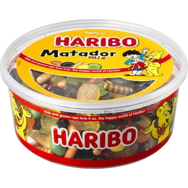 Hvis du bare ikke kan få nok af den klassiske Haribo Matador Mix, så bør du købe denne store dåse med 1 kilo lækker blandet slik. Kassen indeholder alle de velkendte klassikere, som du kan finde i Haribos produktsortiment. Du får blandt andet de velsmagende labre larver og de friske vingummier og lakridser.