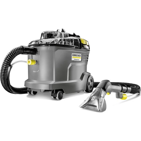 Kraftfuld og kompakt maskine med Spray-Ex-system til rengøring af mindre tæppebelagte områder og polstrede møbler. Det er den maskine på markedet, der efterlader den laveste restfugtighed. Det betyder, at man klart hurtigere kan tage møblerne eller tæppet i brug igen efter rengøringen. Ledningen kan opbevares på en folde-ud-krog. Opbevaringsmulighed for håndmundstykket