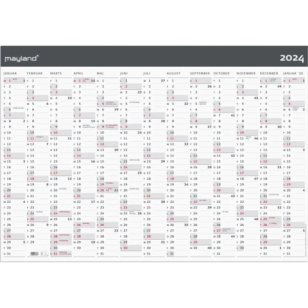 Du får her en kæmpe kalender for året 2024. Kalenderen, der er lavet i kraftigt papir, har et moderne design og en 13 måneders oversigt, som gælder for hele år 2024 samt januar 2025. Med årskalenderen kan du derfor hurtigt og nemt skabe dig et godt og overskueligt overblik over året og alle dets aktiviteter. Kalenderen hænges let på væggen, så du og kontoret altid kan følge med i årets planer.