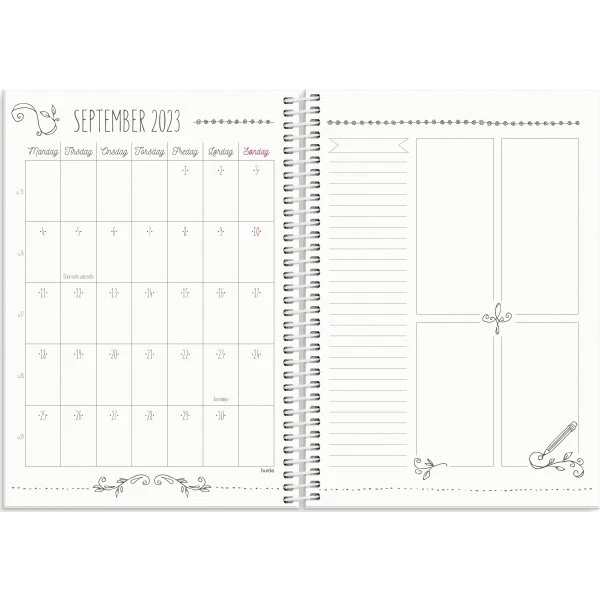 Du får her en kreativ studiekalender for studieåret 2023/2024. Kalenderen har et kartonomslag med et fint tryk, som du selv kan farvelægge – en unik mulighed for at gøre kalenderen helt din egen. Kalenderen er spiralbundet, som gør den nem at bladre i, og så er den inddelt med en uge pr. opslag. Kalenderen kan med fordel bruges som en bullet journal, og du får rig mulighed for at skabe dine egne lister og sætte kulør på din daglige planlægning.