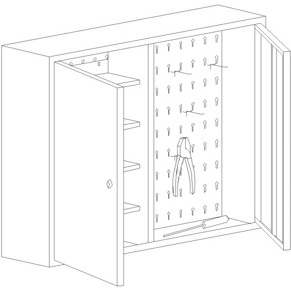 Værktøjsskab med ophæng og hylder der sikrer dig overskuelig og praktisk opbevaring af dit værktøj.