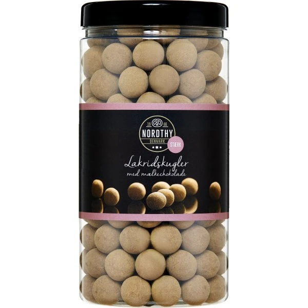 Lakridskugler med chokoladeovertræk og lakridspulver med en lækker stærk smag. Chokolade-lakridskugler er blevet en populær snack over de sidste par år, og det kan man sagtens forstå, når man smager disse! Lakridskuglerne smager himmelsk, for lakrids og mælkechokolade komplimenterer hinanden overraskende godt. Et must for enhver som sætter pris på både chokolade og en omgang god stærk lakrids.