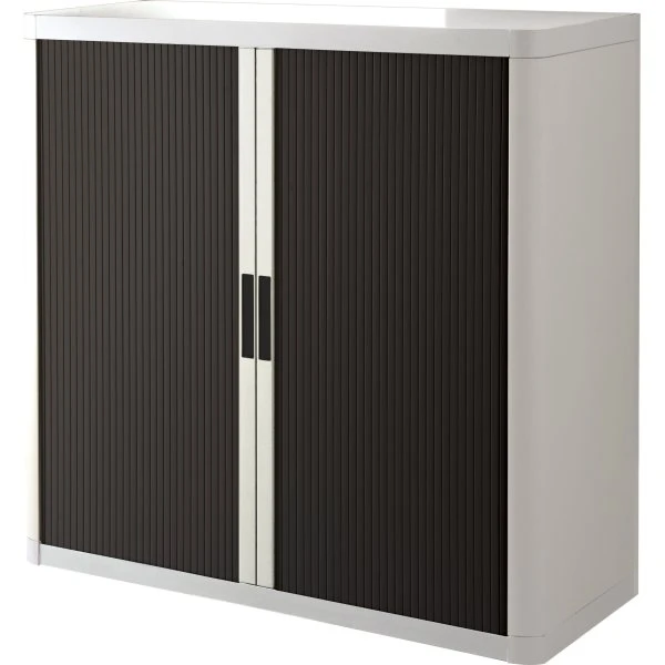 Easy Office er fremstillet af slagfast farvet polystyren og metal, der holder vægten nede og styrken oppe. Jalousidørene er i polypropylen med 15 mm tynde kanter, der rulles op og skjules i sidevæggene, hvormed der opnås en fuld synlighed og adgang til skabets indre.