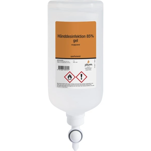 Plum hånddesinfektionsgel er alkoholbaseret og indeholder 85 % ethanol. Gelen dræber effektivt bakterier og vira fra hænderne og virker desinficerende på huden så du minimerer smittespredning.