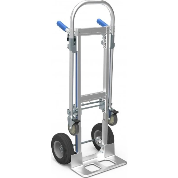 ALU Sækkevogn 2-i-1 udmærker sig ved at være en multi-funktionel vogn, der kan bruges både som sækkevogn på to hjul og som ladvogn med fire hjul.