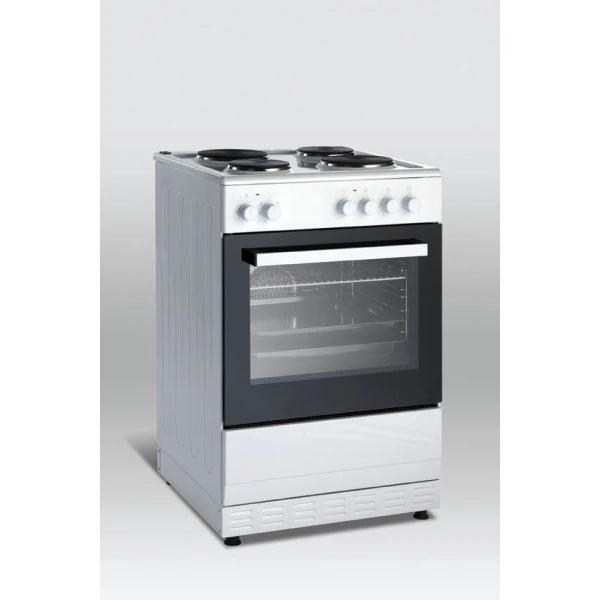 Dette fritstående komfur fra Scandomestic er et almindeligt komfur med en ovn og 4 kogeplader, så du kan lave alverdens mad. Selve ovnen kan rumme op til 60 liter og har 6 forskellige funktioner. Både ovnen og de 4 kogeplader betjenes via knapperne på fronten. Der medfølger både en bradeplade, bageplade og en grillrist.