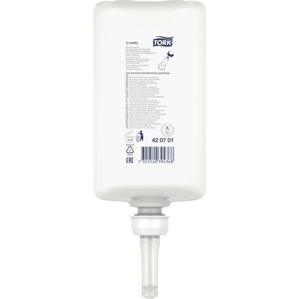 Tork S1 Sensitiv Sæbe er mild og cremet, og den giver et fyldigt og cremet skum. Sæben er dermatologisk testet, og certificeret med EU-Blomsten.