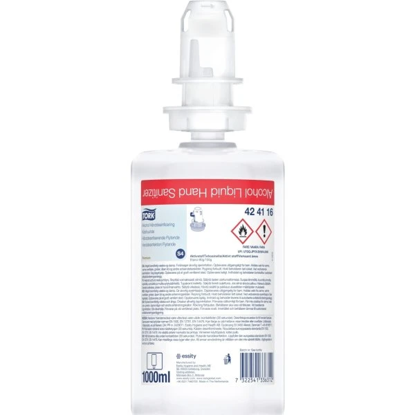 Den flydende desinfektion kan bruges i Tork S4-dispensere, som sørger for, at der kun anvendes den mængde, der er behov for. Hånddesinfektionen kommer i en hygiejnisk engangs-pumpeflaske som kan udskiftes, når den er tom og det udskiftelige system reducerer risikoen for krydskontaminering.