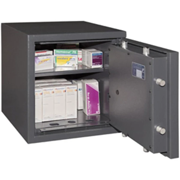 Værdiskabet er testet og forsikringsgodkendt i Klasse 1, hvilket svarer til Rød Skafor sikringsklasse. Dette betyder, at skabet kan modstå voldsomme angreb med mekaniske værktøjer i lang tid, og at det er godkendt til opbevaring af kr. 40.000 u/alarm og kr. 80.000 m/alarm.